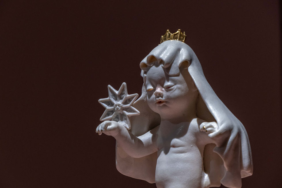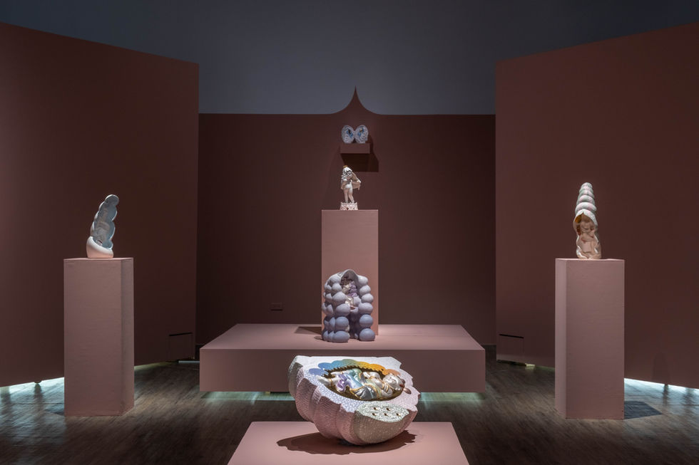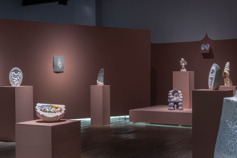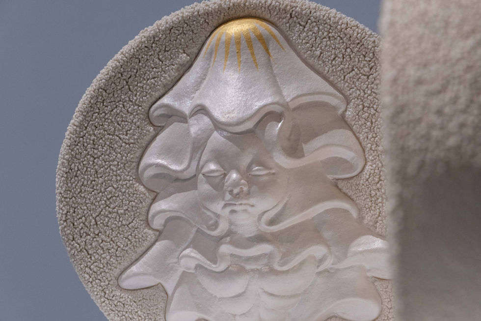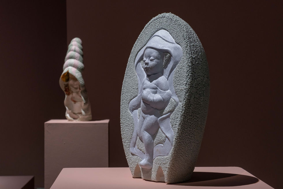 本展的核心媒介是「模具」。傳統上,凹模為「母模」,用以翻製量產;陽模則是被複製的對象。藝術家反向操作,以陽模翻製陰面,再以陶瓷盤條手捏塑形,讓作品在不同角度都能被閱讀,呈現出既魔性又詭譎的立體感。